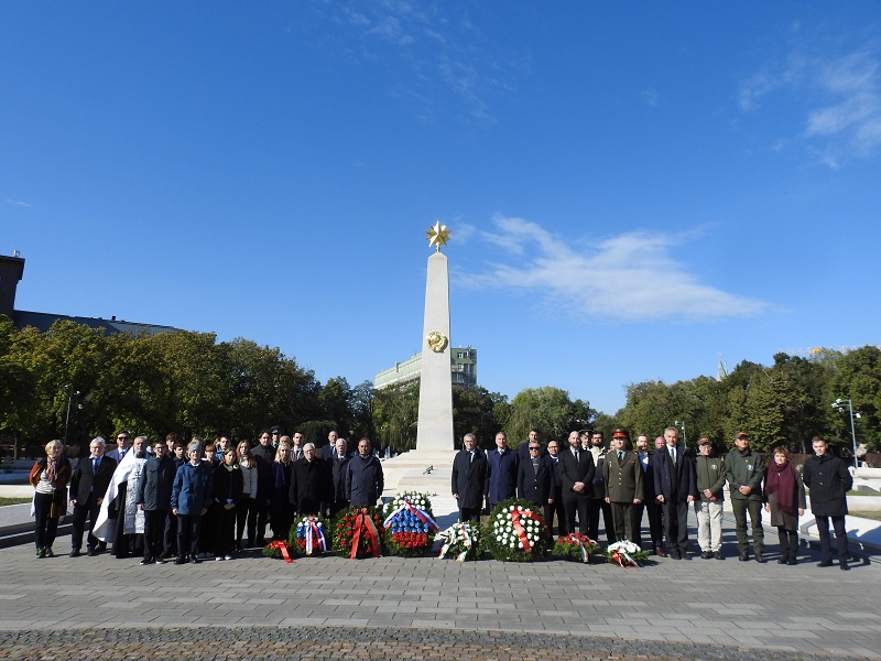 Пасол У.Я. Улаховіч разам з калегамі з Пасольства Расійскай Федэрацыі, Пасольства Кыргызскай Рэспублікі, Ваенна-гістарычнага Інстытута і Музея Міністэрства абароны Венгрыі, венгерскіх антыфашысцкіх арганізацый, Венгерска-расійскага таварыства культуры і сяброўства, а таксама Венгерскай рабочай партыі ўсклалі вянкі да помніка савецкім салдатам і ўшанавалі памяць загінулых герояў хвілінай маўчання.